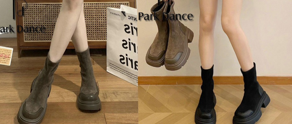 SALAXI厚底短靴女2023新款弹力瘦瘦靴复古英伦风马丁靴女低筒女靴 棕色 36