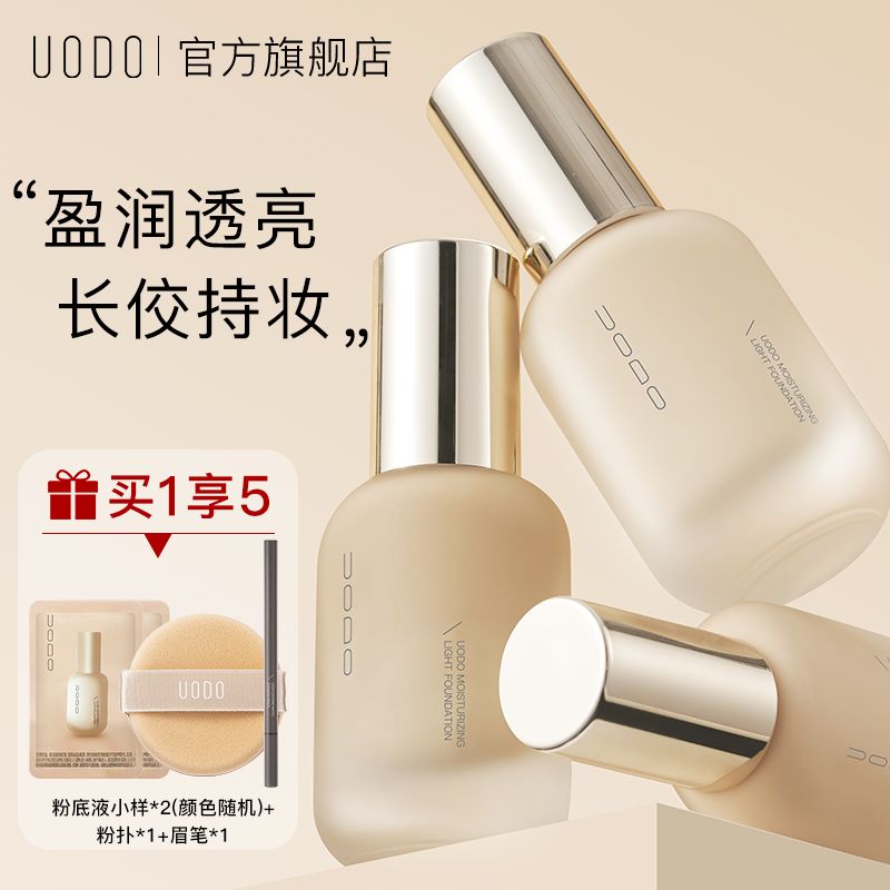 UODO粉底液持久不易脱妆遮瑕保湿不卡粉干油皮bb加双头眉笔套装