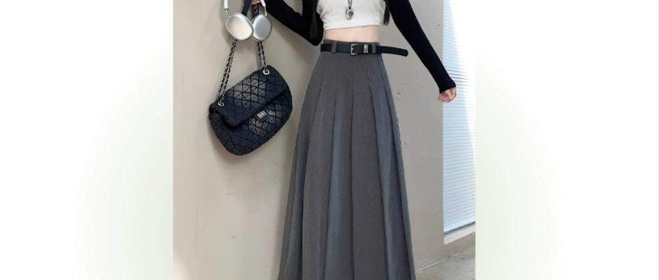 百褶裙,通勤,高腰,显瘦