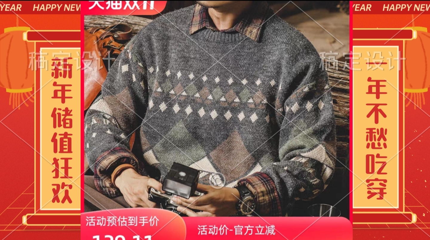 美式经典传统复古毛衣,男冬季潮牌宽松大码加厚民族风针织衫外套男