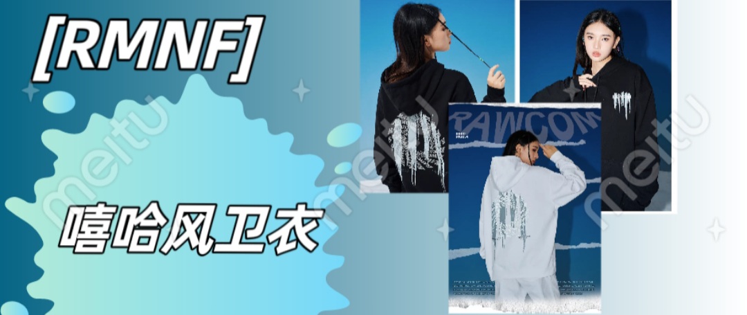 RMNF(RAWCOM) 秋款美式复古连帽卫衣潮牌休闲宽松情侣连帽卫衣