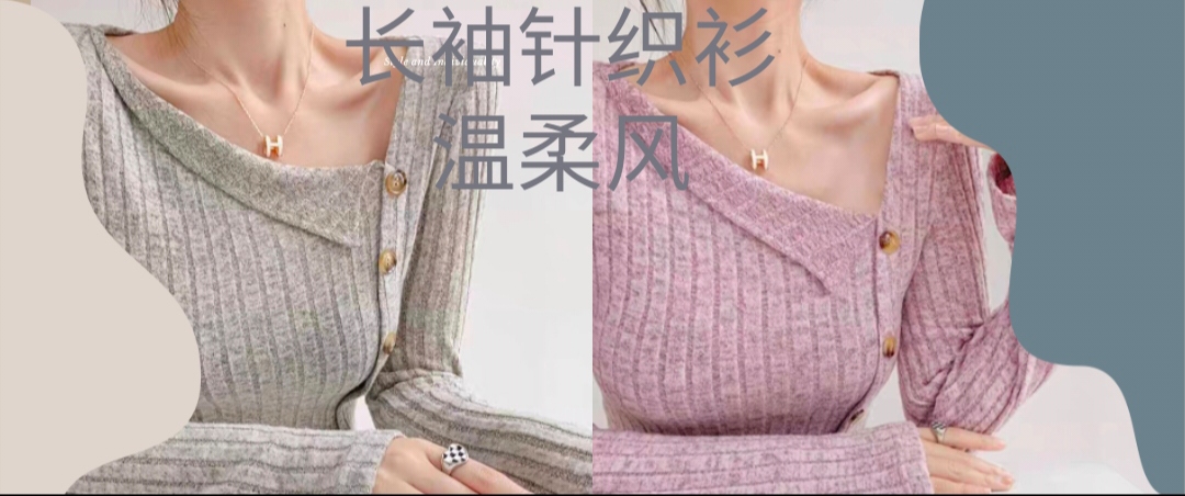 长袖针织衫女温柔风2023秋冬内搭修身不规则斜襟单排扣上衣潮 麻灰色 S
