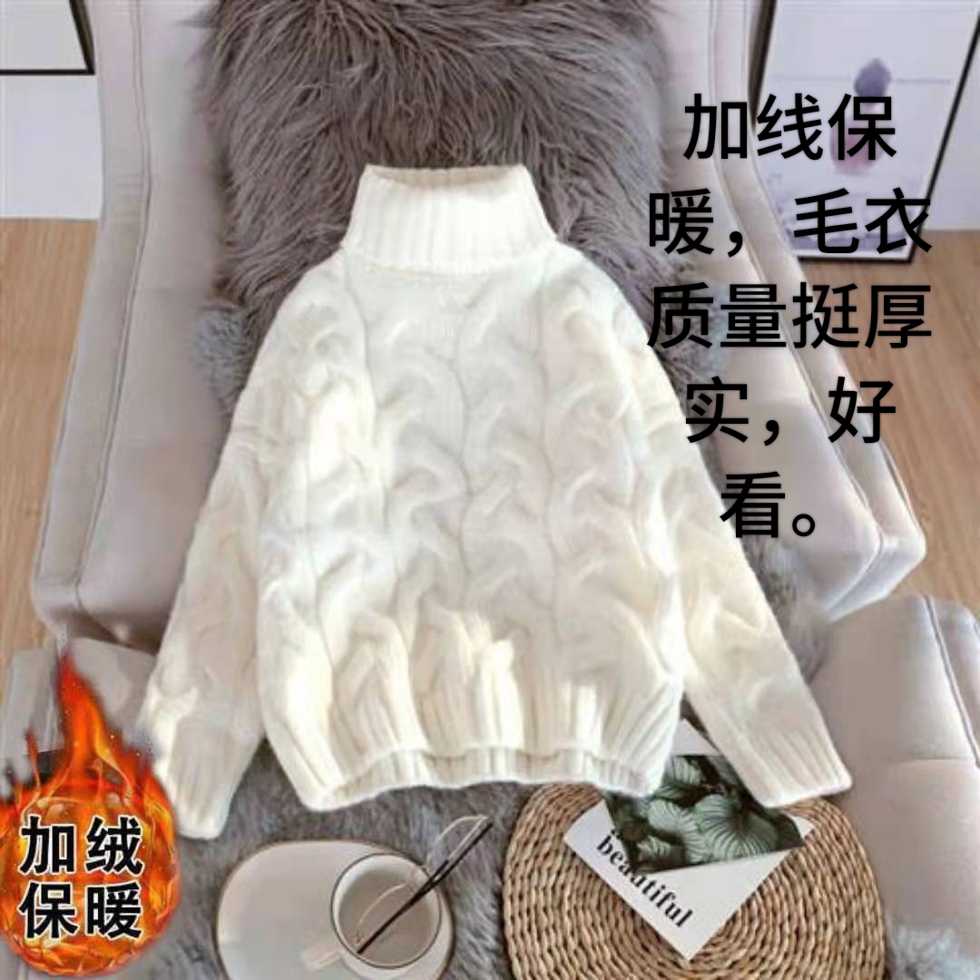 加绒加厚高领毛衣女韩版宽松洋气堆堆领冬季2023新款套头针织衫女