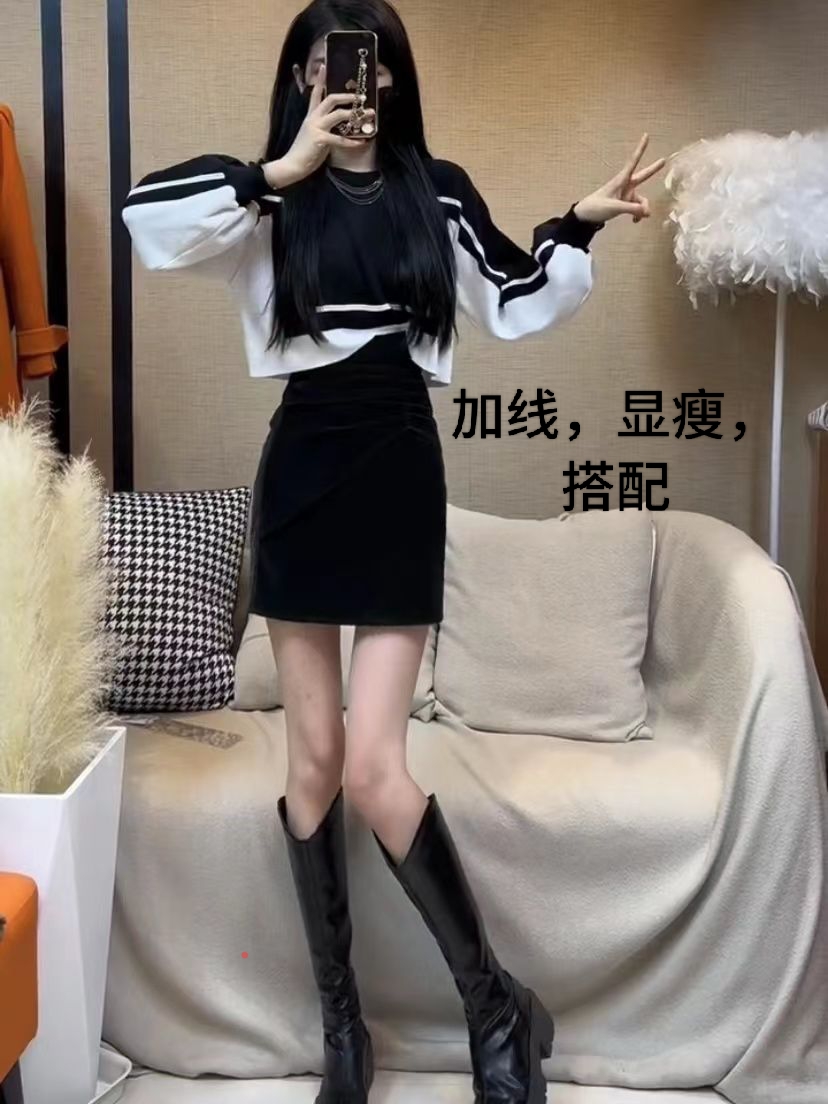 2022秋冬新款撞色卫衣包臀半身裙暗黑系套装炸街网红爆款两件套女