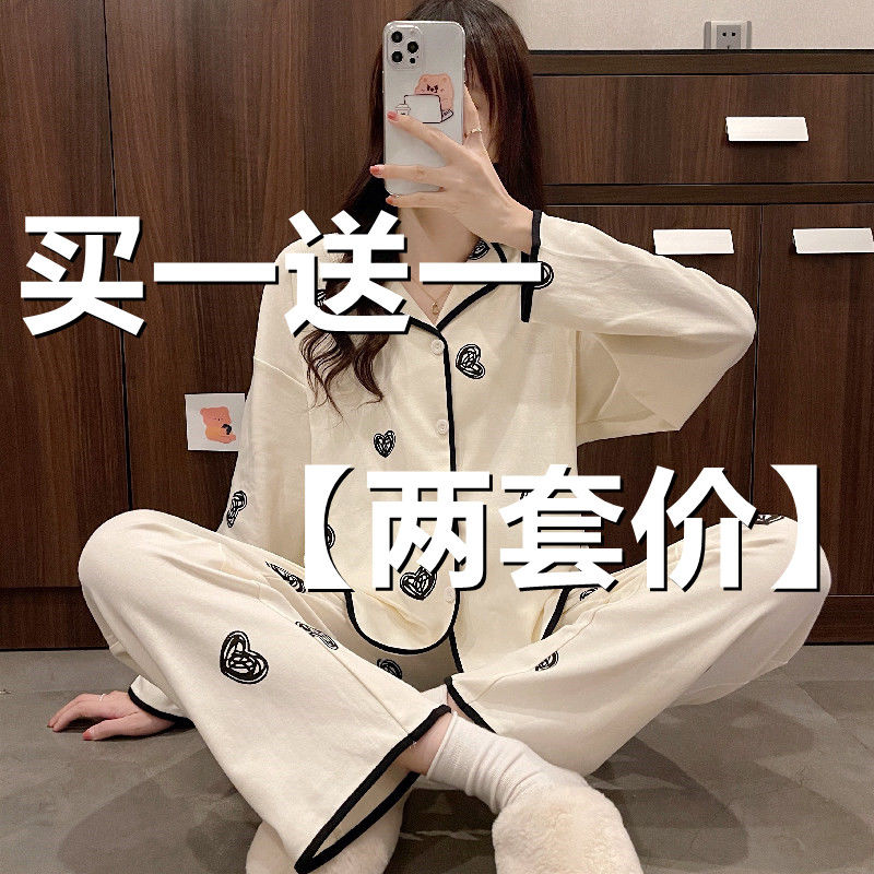 睡衣女春秋冬季纯棉长袖口袋黑色网红风2023年新款可爱家居服套装