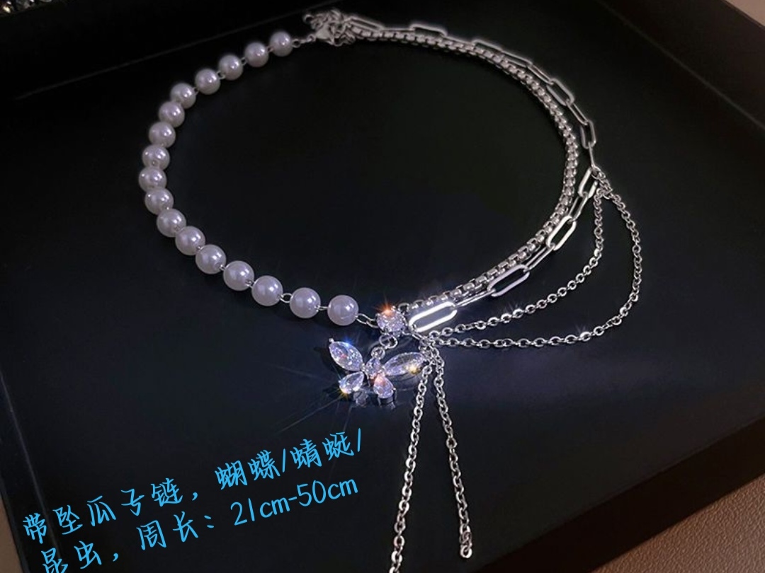 珍珠项链2022新款女锆石蝴蝶流苏拼接小众设计轻奢高级感锁骨链潮