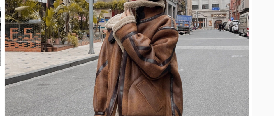 棕色皮毛一体羊羔毛女冬季加绒厚外套2023欧货爆款美拉德机车棉服