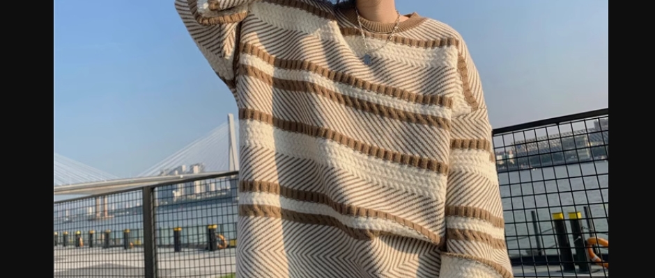 慵懒风chic港味套头针织宽松上衣撞色条纹毛衣男女MY06-