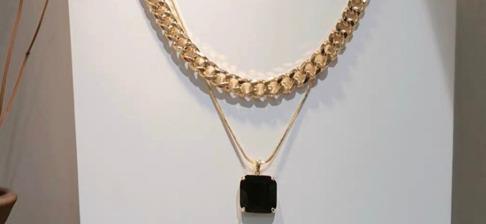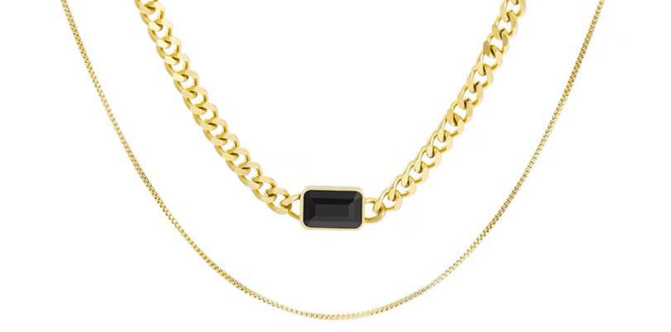 2023春夏高级复古优雅度假镀金黑色玛瑙天然石叠戴多层项链颈链女