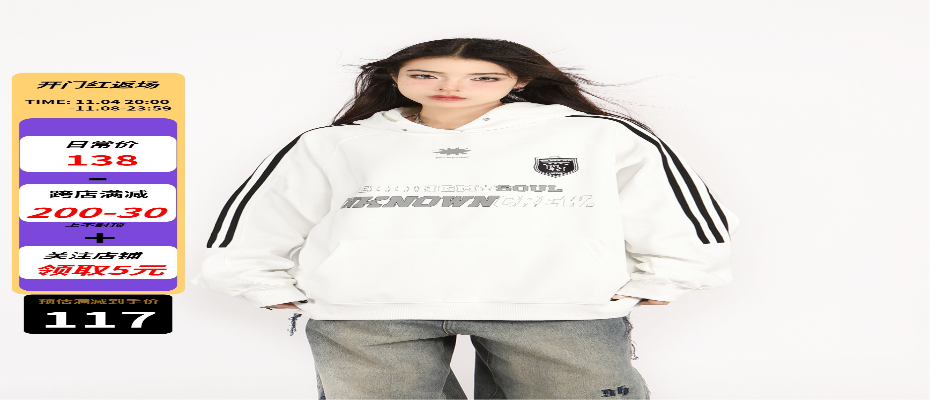 BIGGOLD美式复古三条杠插肩袖连帽卫衣女秋冬oversize情侣外套潮