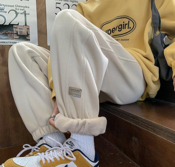 柏宜斯裤子女新款2023爆款休闲运动裤春秋宽松直筒束脚卫裤冬季加绒加厚