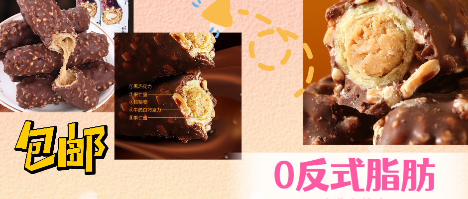 【爆浆-5层夹心】韩世花生夹心巧克力果仁棒720g年货糖果5支代脂