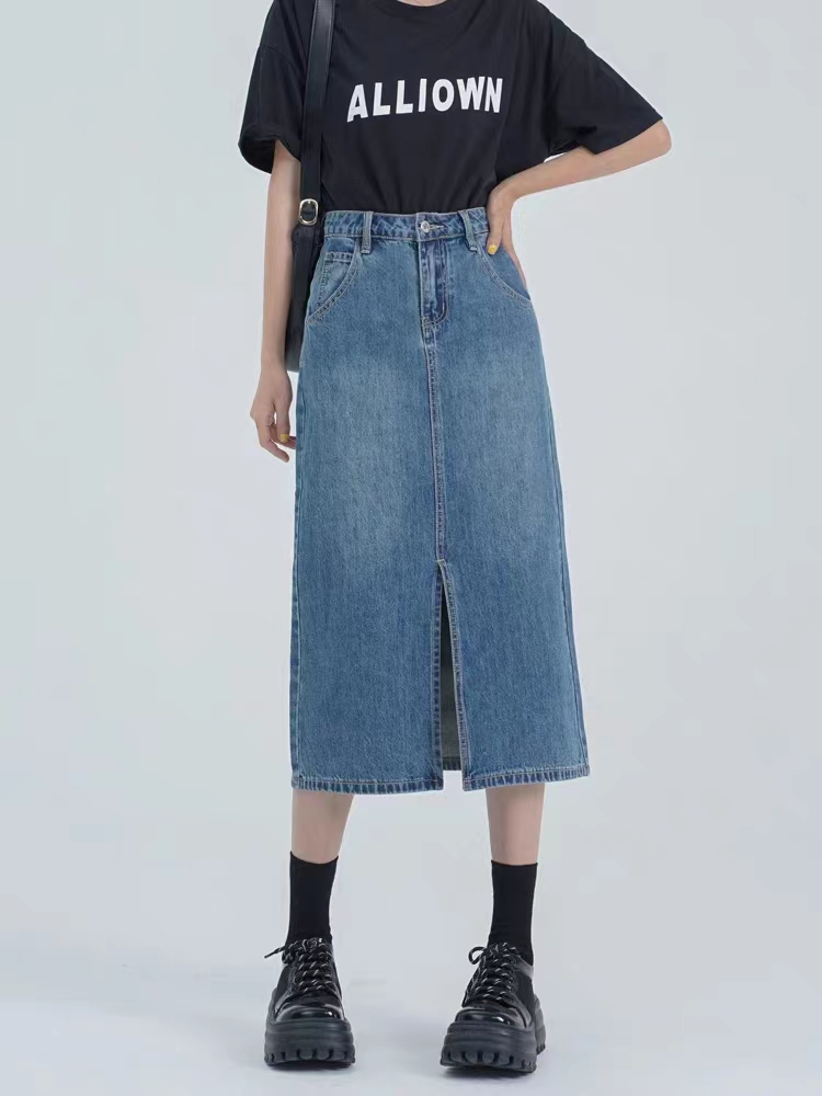 复古开叉牛仔半身裙