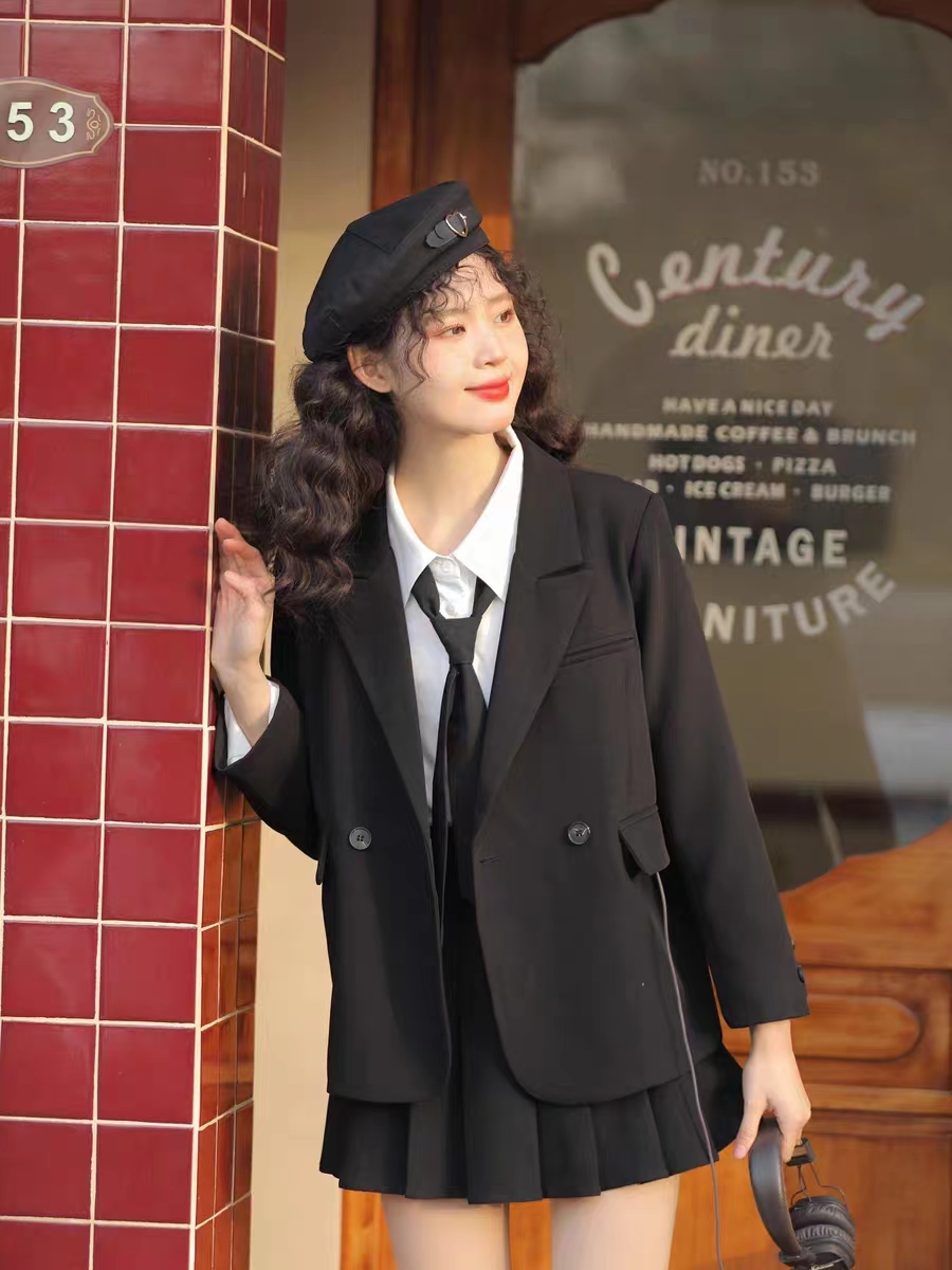 小个子通勤西服宽松上衣黑色西装外套