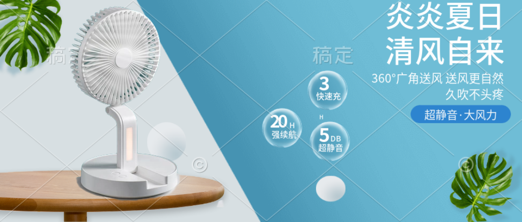 折叠收纳,自动摇头,低噪运行,夜灯功能,三档风力,内置电池