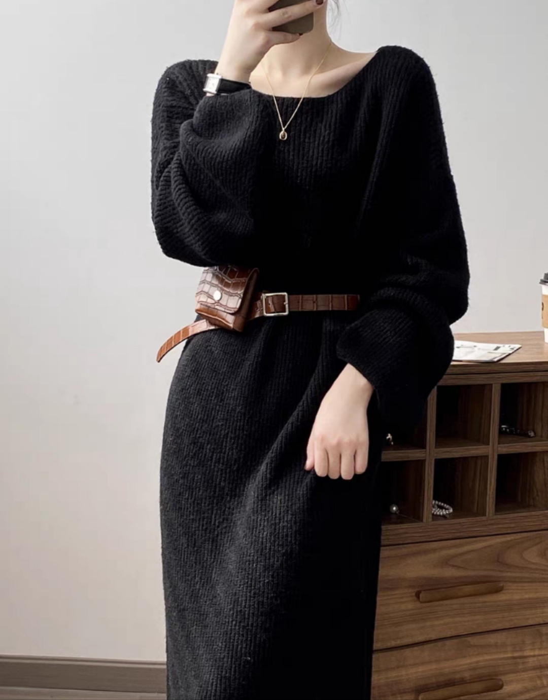 秋冬新品连衣裙 长款 白色 S
