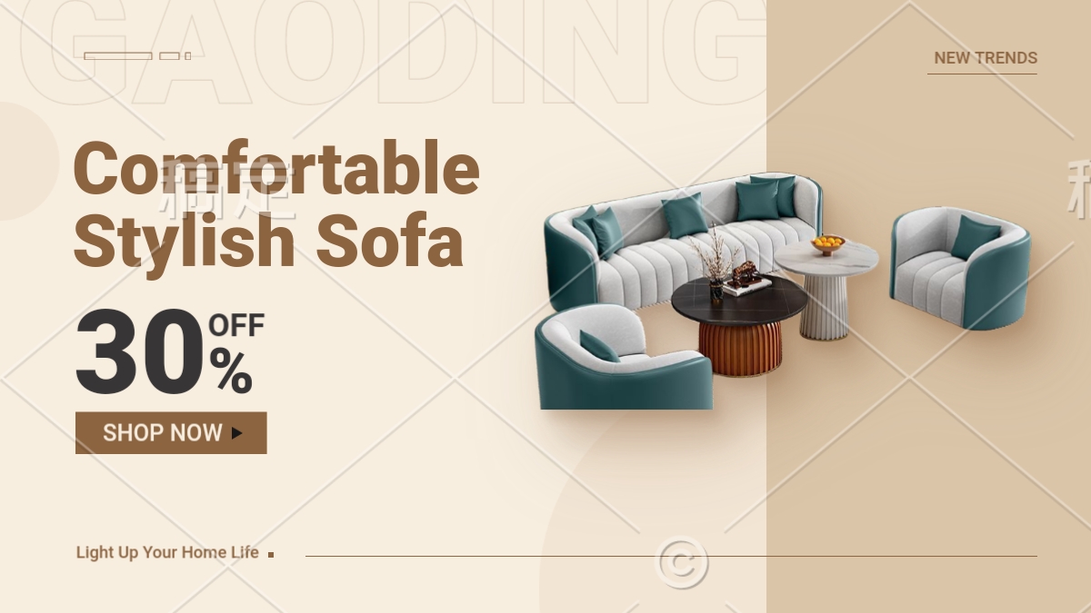 恬静轻享商务洽谈沙发茶几组合耐磨西皮/回弹海绵/实术框架