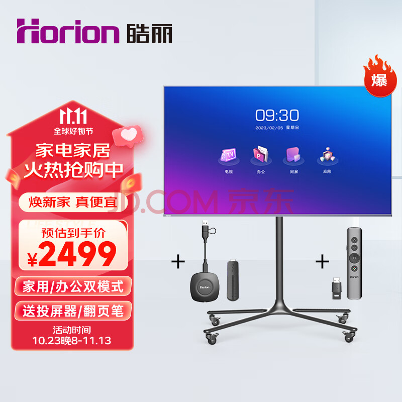 皓丽(Horion)超薄55英寸 4K会议平板电视一体机 手机无线投影投屏 商用会议室移动显示智慧大屏 55H5+移动底座