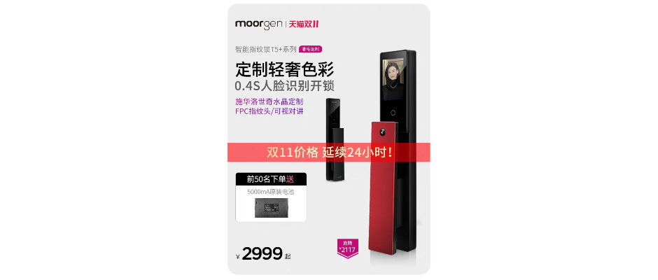 【色彩定制】摩根T5智能锁指纹3D人脸识别防盗密码门锁家用电子