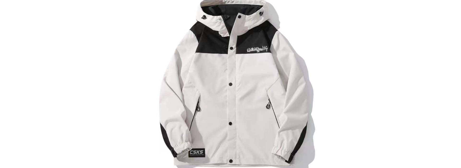 放风防水连帽冲锋衣,宽松混搭,多层次,同色系为主,呈现干净利落街头感,结合黑日潮流元素,展现个性风格