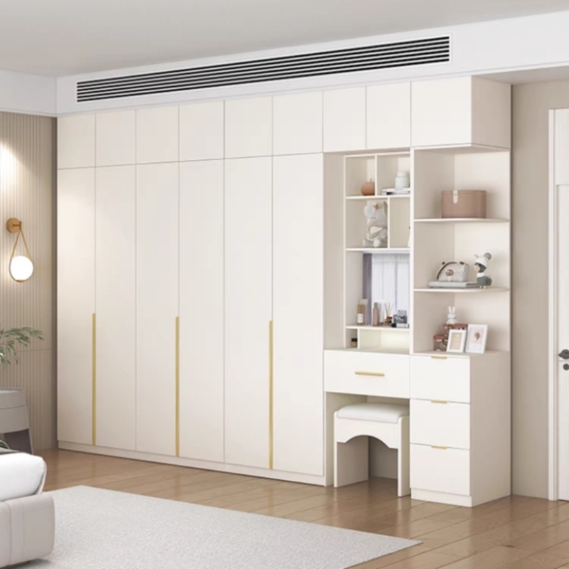 法式奶油风轻奢主卧转角书桌衣柜家用卧室一体组合大小户型衣橱700