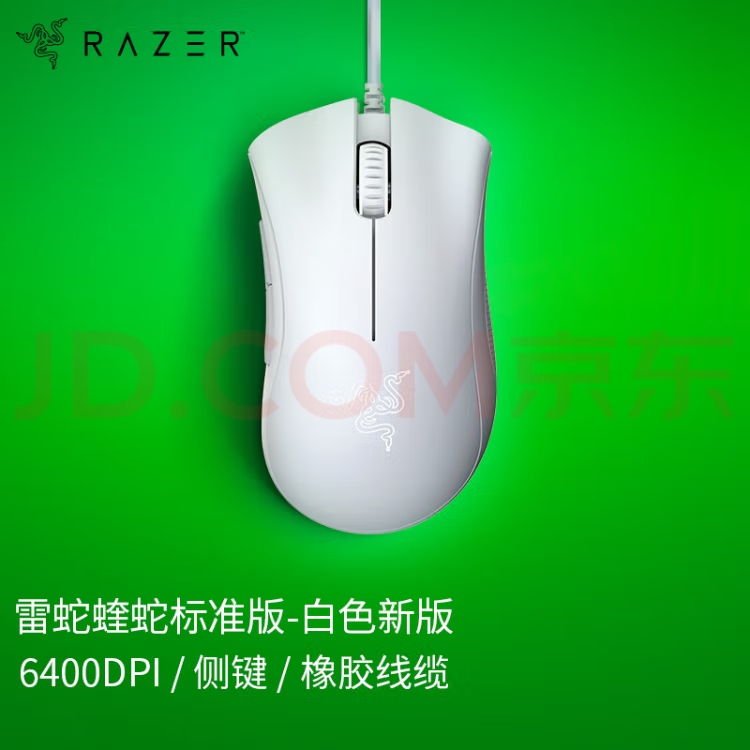 雷蛇(Razer) 炼狱蝰蛇标准版有线鼠标 人体工学 右手通用型 吃鸡/LOL/CS游戏鼠标 白色