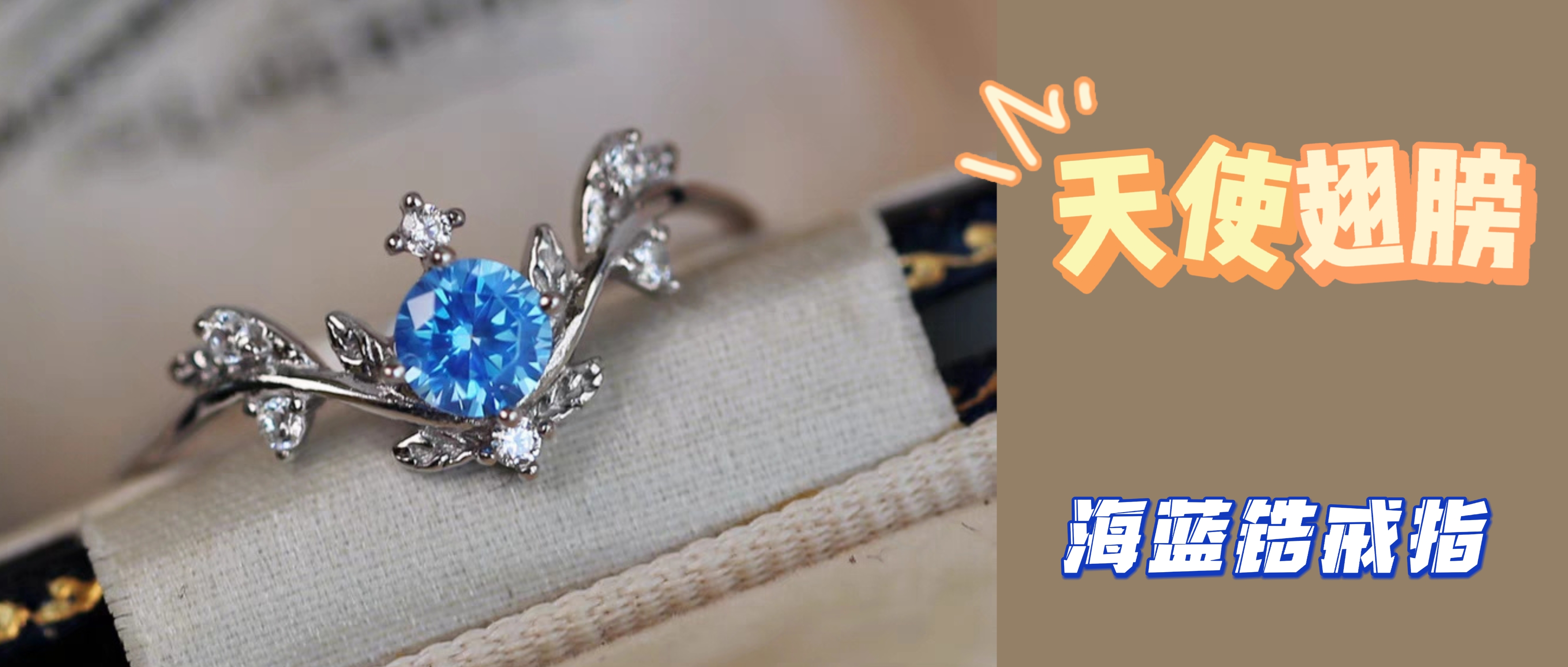 天使翅膀 原创小众设计海蓝锆钻弧度s925纯银戒指指环