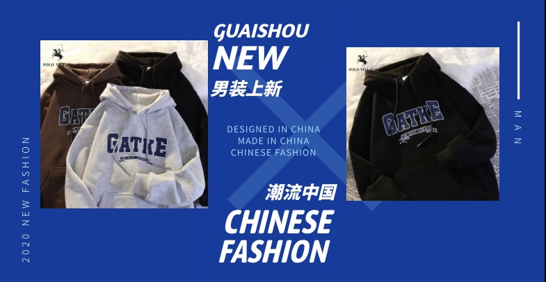 POLOVILLAE100%纯棉连帽卫衣男秋冬加绒加厚宽松oversize外套上衣