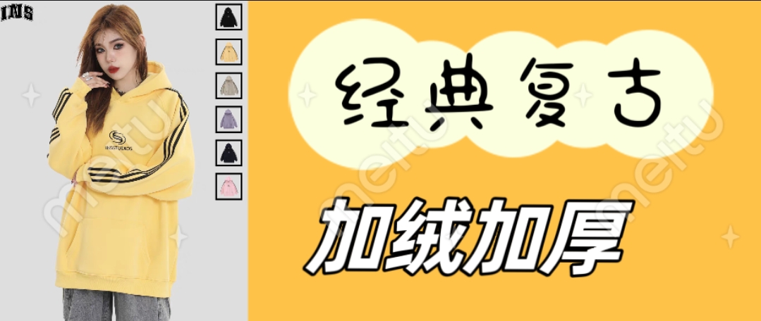 宽松连帽版型,拼接条纹工艺,重磅定染面料。