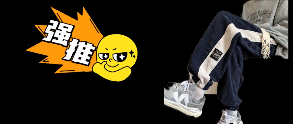 灯芯绒休闲裤男美式潮牌拼接撞色贴标运动阔腿裤子宽松束脚长裤男