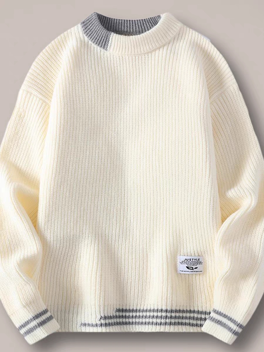男士毛衣秋冬季圆领青少年学生针织打底衫加绒加厚款潮流羊毛衫