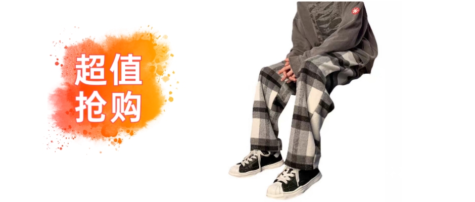 美式vibe炸街裤子男男秋冬大格子加厚毛呢裤vintage复古阔腿长裤