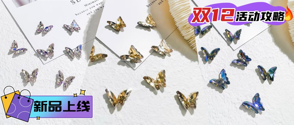 今年最流行的网红款美甲蝴蝶饰品拼接2023新款立体水晶蝴蝶翅膀钻石网红爆款指甲装饰