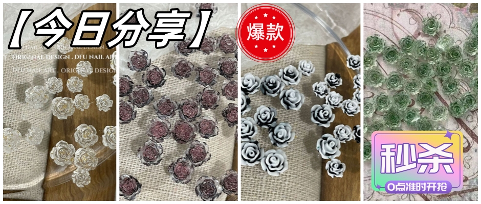 流行款,爆款山茶花美甲饰品2023年新款玫瑰多色简约花指甲装饰钻网红混装爆款