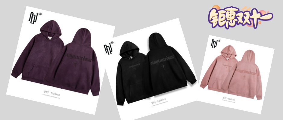 PNJ500克重磅仿麂皮绒卫衣男生潮牌美式休闲套头外套男女情侣加厚