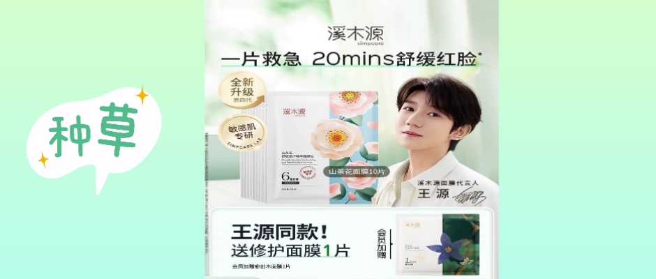 溪木源山茶花面膜补水保湿舒缓修护精华奶皮贴片面膜女男官方正品