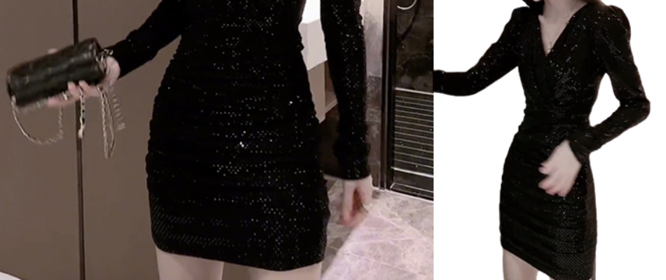 小香风亮片v领连衣裙女修身显瘦秋冬内搭裙2022新款高级感包臀裙