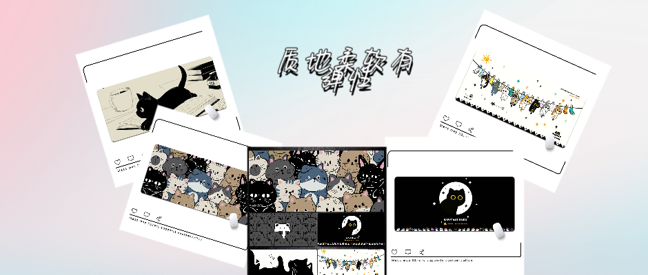 中国风猫咪鼠标垫超大电竞日系可爱定制键盘垫电脑办公桌垫子