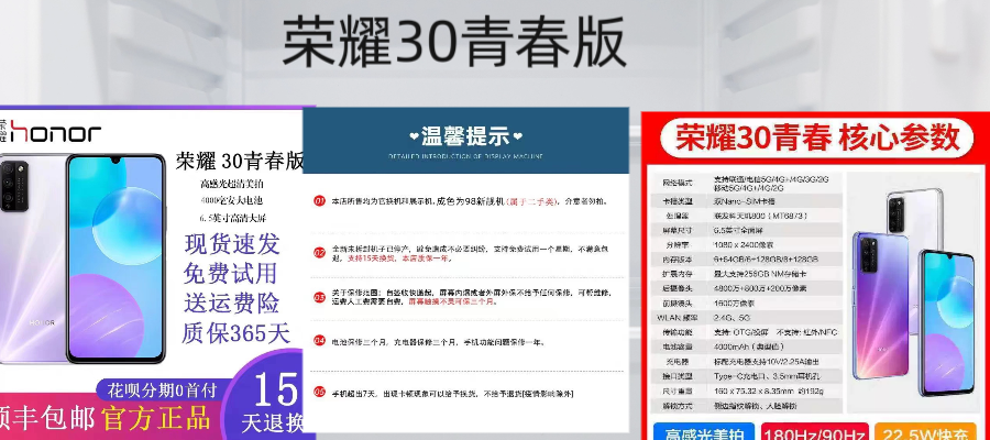 honor/荣耀 荣耀30青春版全网通5G双模4800万智能游戏手机