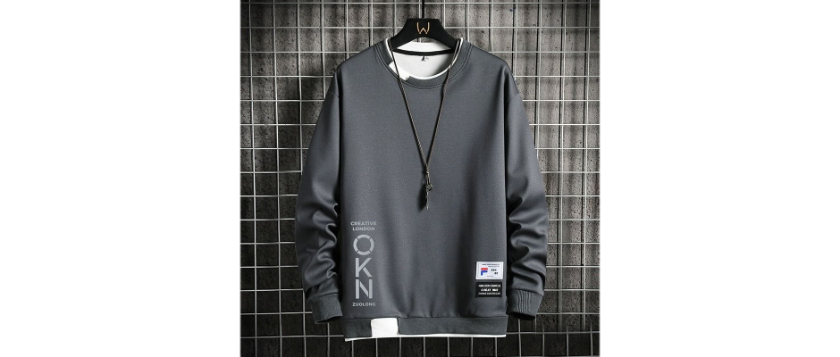 长袖t恤男士春秋季卫衣国潮牌加绒打底衫内搭假两件青少年上衣服