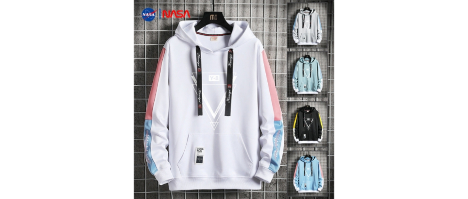 NASA联名连帽卫衣男2023春秋新款潮牌时尚百搭休闲运动风上衣男