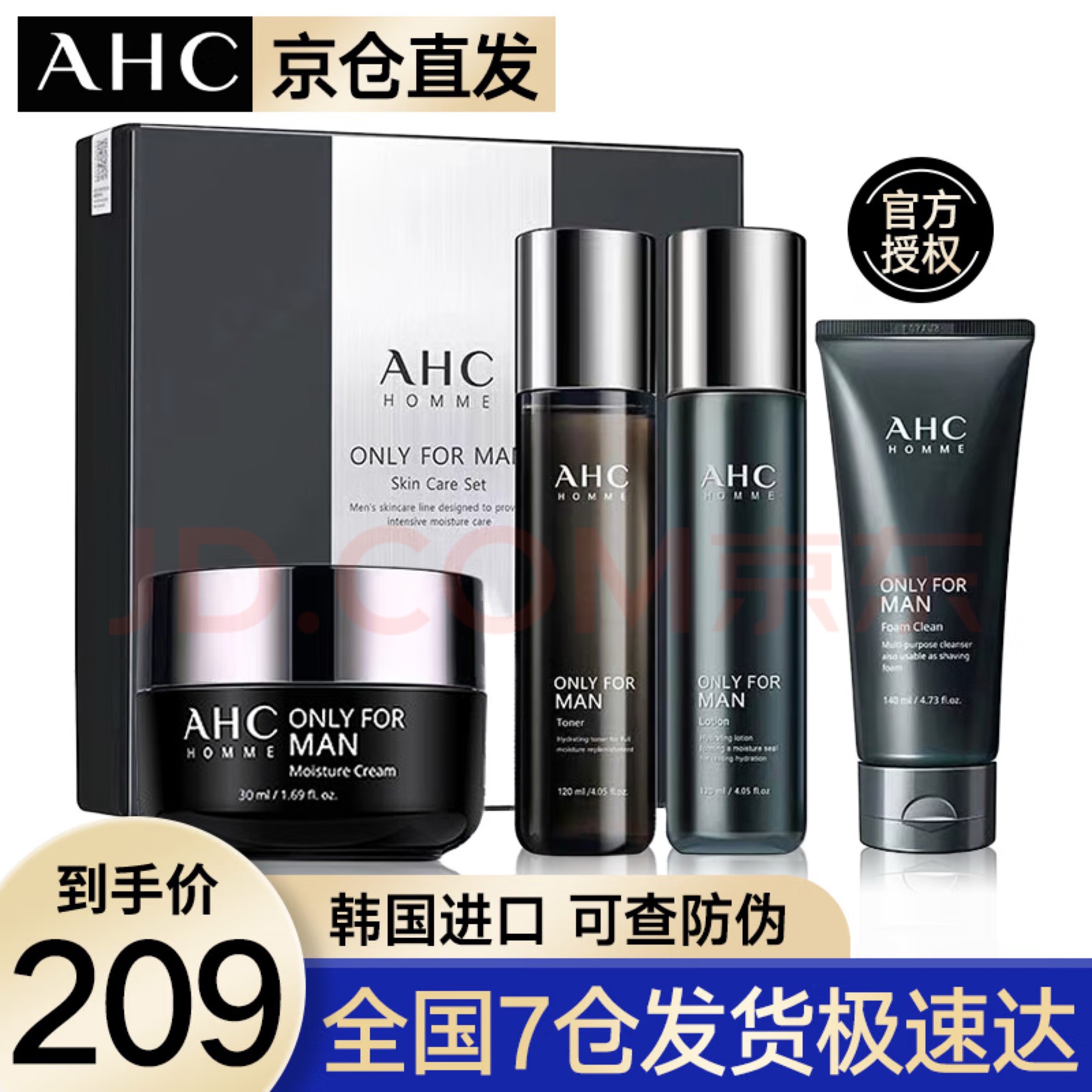 AHC 男士洁水乳男士护肤品套装礼盒洗面奶控油保湿洁水乳学生男女士 AHC男士水乳四件套
