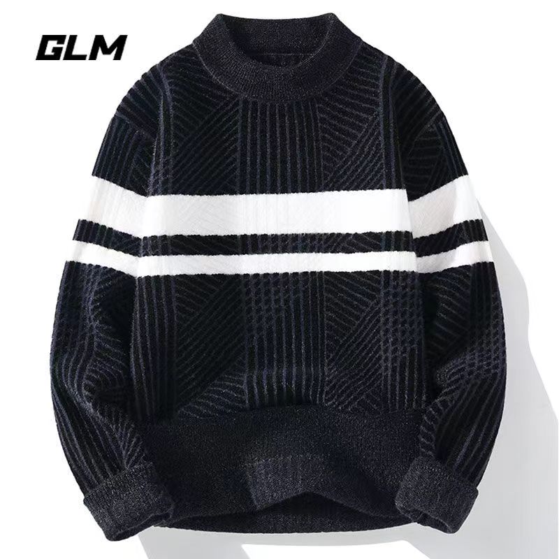 森马集团品牌GLM软糯毛衣男秋冬季针织衫潮牌宽松拼色套头线衣男
