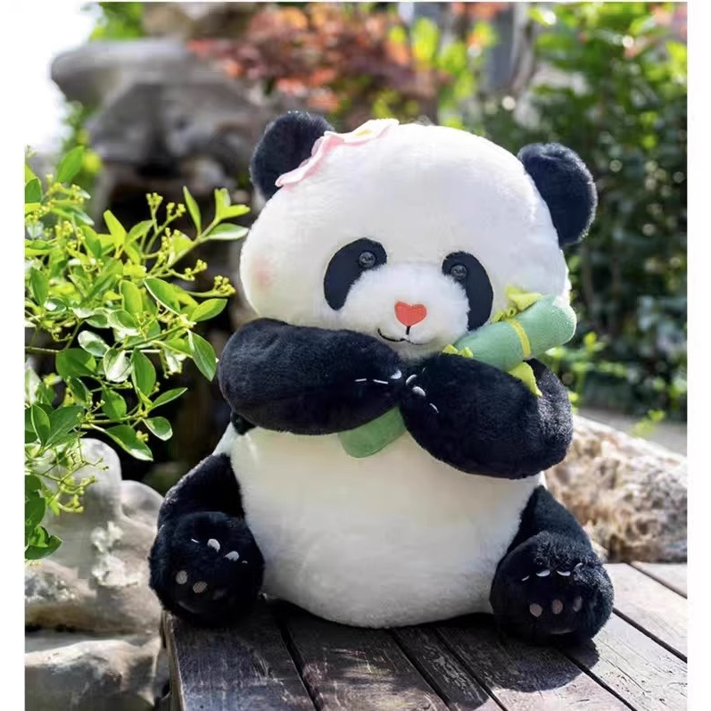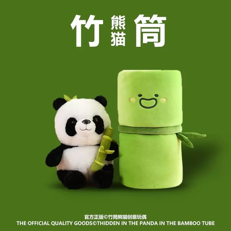 竹筒熊猫玩偶抱竹子绒玩具花花小公仔柔软毛抱睡送女生毕业季礼物