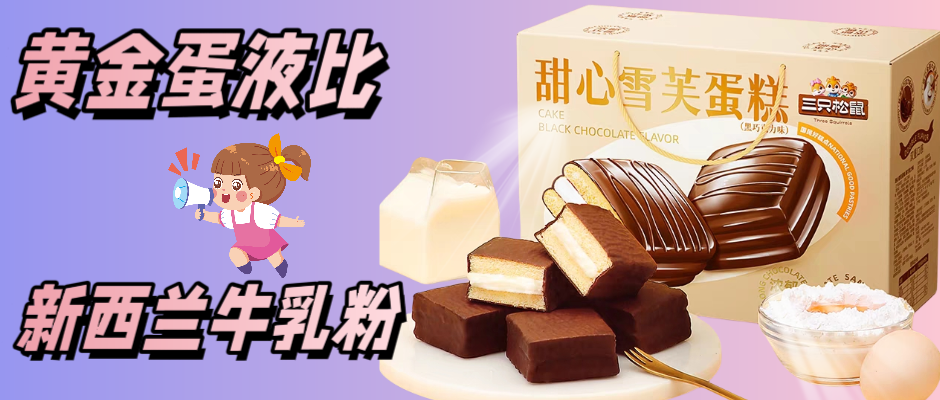新西兰牛乳粉 黑巧克力风味涂层 黄金蛋液比 优质小麦粉 甜心芙蓉蛋糕