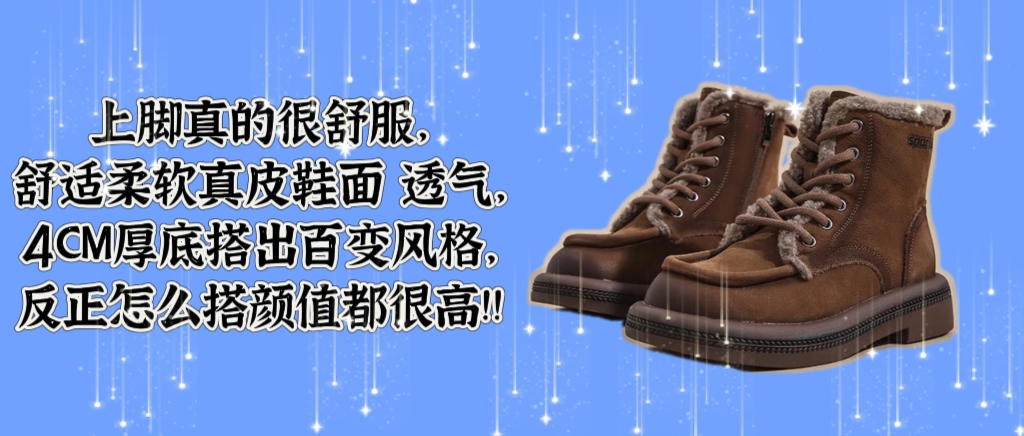 圆弧鞋头 不易挤脚 加绒加厚 内里保暖 秋冬时尚