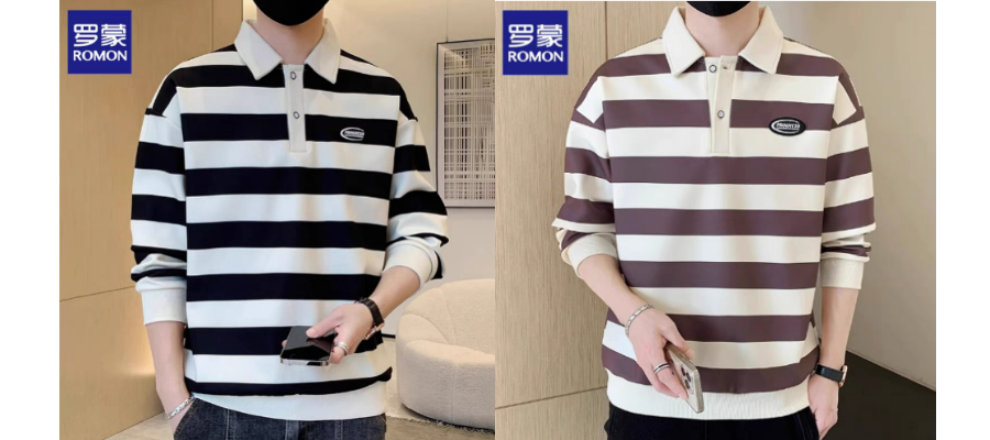 罗蒙长袖t恤男士2023春秋季新款韩版潮流条纹卫衣休闲Polo衫男装 条纹 咖啡色
