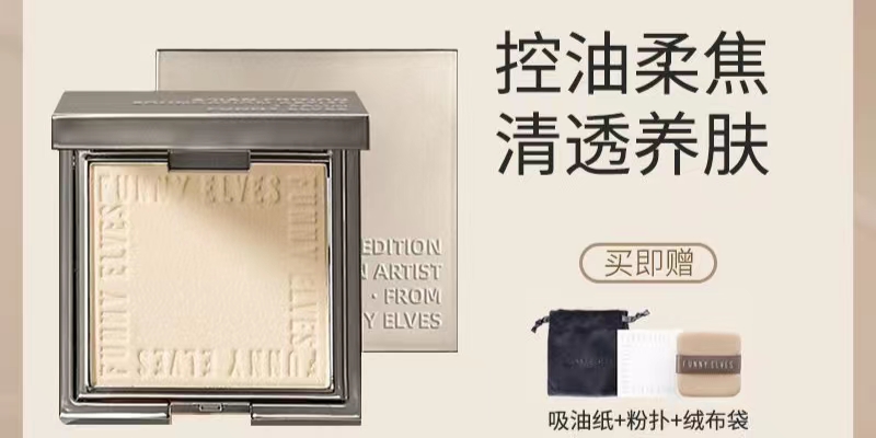 funnyelves粉饼方里柔焦蜜粉饼FE持久定妆防水控油遮瑕隐匿毛孔