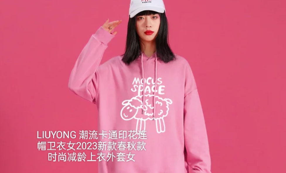 LIUYONG 潮流卡通印花连帽卫衣女2023新款春秋款时尚减龄上衣外套女