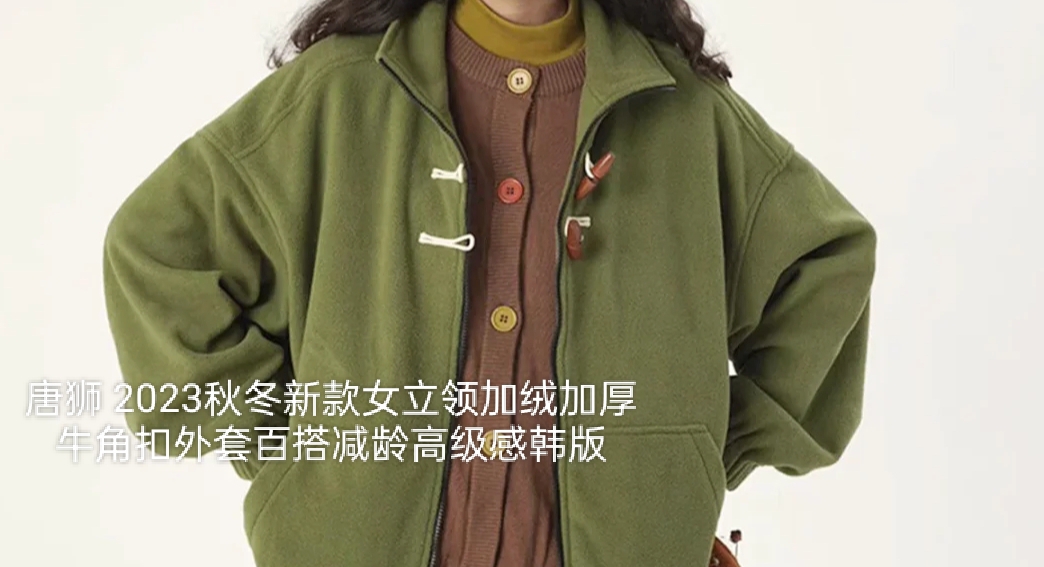 唐狮 2023秋冬新款女立领加绒加厚牛角扣外套百搭减龄高级感韩版